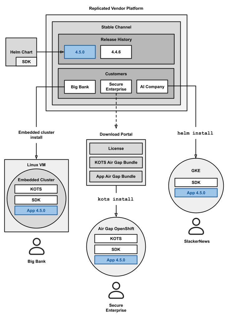 apiVersion: kots.io/v1beta2or the HelmChart custom resourceapiVersion: kots.io/v1beta1withuseHelmInstall: true.importantKOTS Auto-GitOps is a legacy feature and is not recommended for use. For modern enterprise customers that prefer software deployment processes that use CI/CD pipelines, Replicated recommends the Helm CLI installation method, which is more commonly used in these types of enterprise environments.